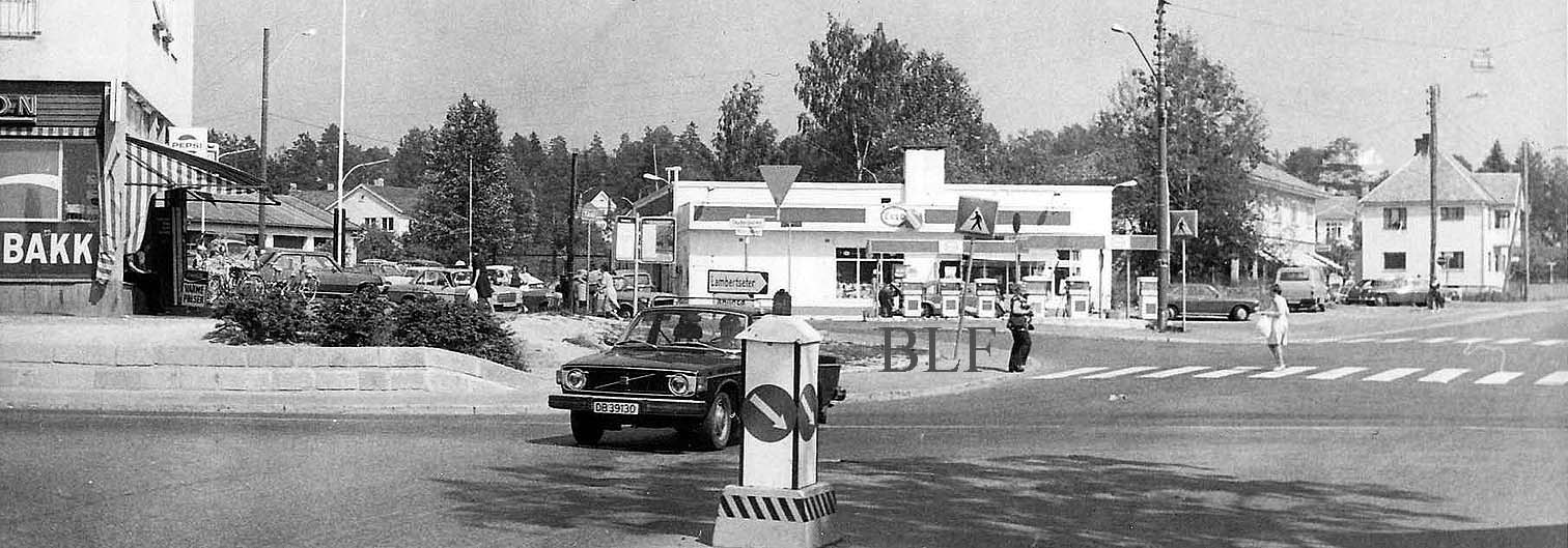 Bilde fra Seterkrysset fra tiden før bensinstasjonen ble ombygget
