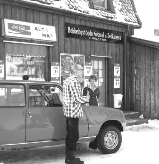 På bildet er butikken med Guldberg og hans nye bil.
