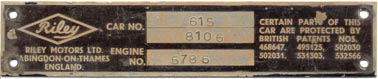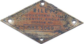 Diverse merknader: Chassisnummerplate er bevart, denne bilen ble laget Coventry, fra 1949 ble Riley fabrikken flyttet til Abigdon