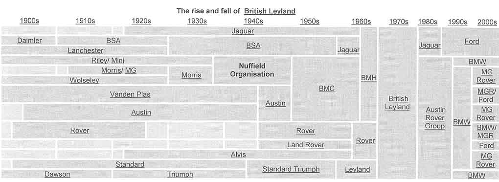 Her ser vi en oversikt som viser hvorledes de ulike fabrikker har slått seg sammen. Ofte var dette på bakgrunn av at en fabrikk gikk konkurs eller hadde store økonomiske vanskeligheter.